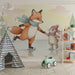 De pastelfarvede nuancer og de delikate silhuetter af træer i baggrunden skaber en beroligende og varm atmosfære, ideel til at stimulere din lille's fantasi. Hver detalje, fra rævens pels til kaninens ører, er omhyggeligt illustreret for at give en levende og fængslende effekt.