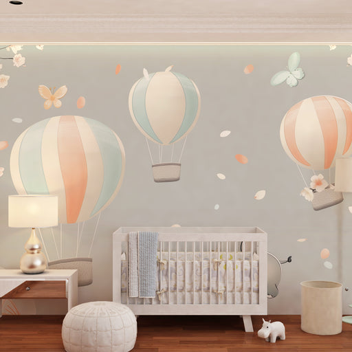 KidsWallGiv dit barn en magisk rejse til hjertet af en himmel befolket med farverige luftballoner, et smilende fly og letflydende skyer svævende med lethed...