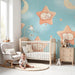 Vægmaleri til børneværelse | Sovende stjerner og katte under en blå himmel