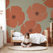 Børneværelse tapet | Koralfarvede blomster på blød baggrund