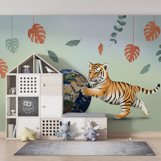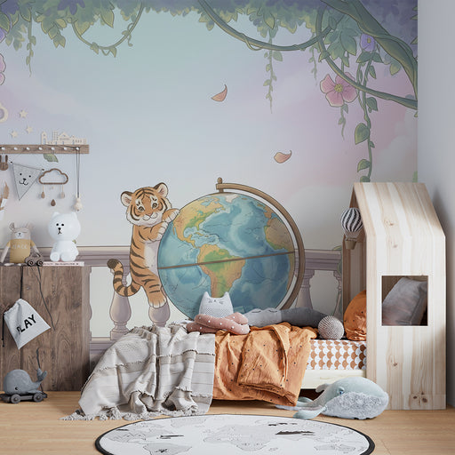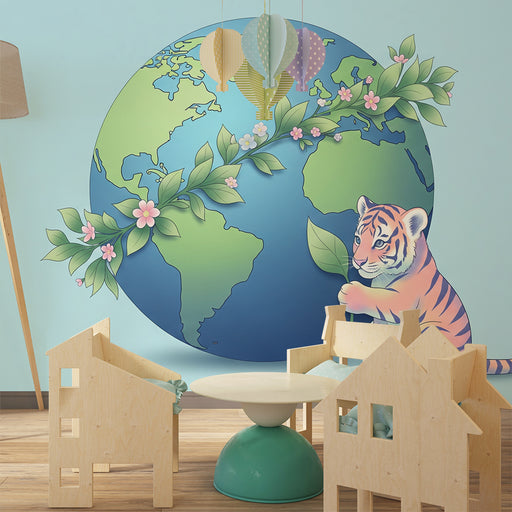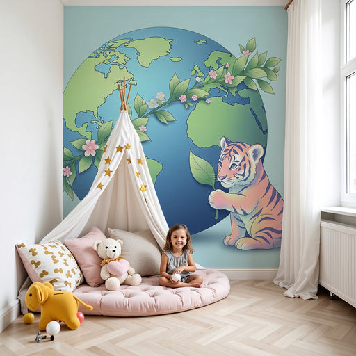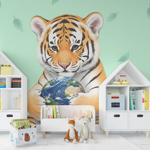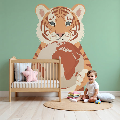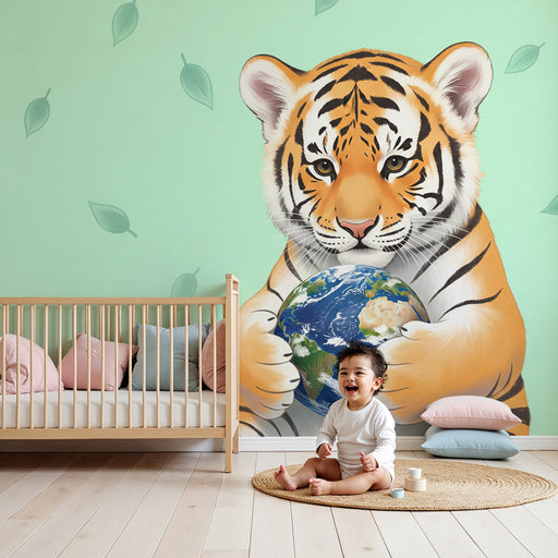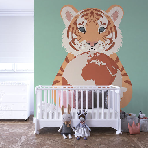 KidsWallTransformér dit barns værelse til et legende og lærerigt rum med denne børneværelse tapet, der viser en sød tiger, der holder jorden. Dette fængsle...