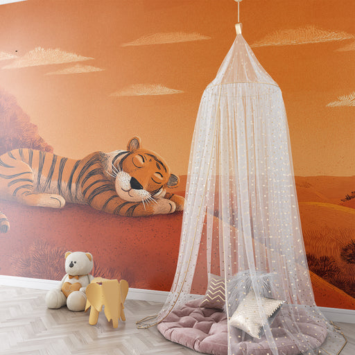 KidsWallForvandl dit barns værelse til et ægte savannelandskab med denne børneværelse tapet, der viser en fredeligt sovende tiger. I en varm og beroligende...