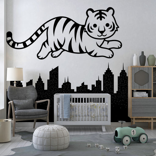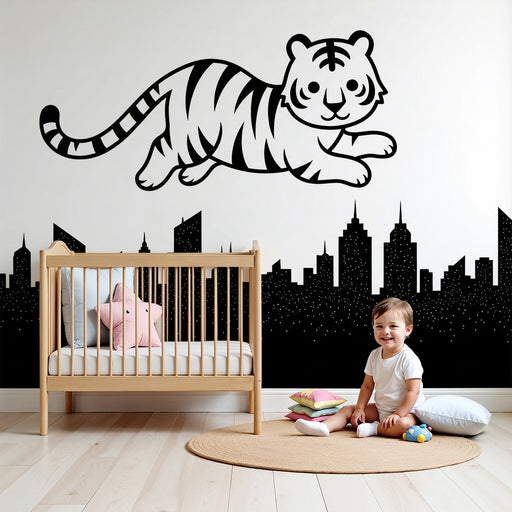 KidsWallForvandl dit barns værelse til et legende og dynamisk rum med denne børneværelse tapet, der viser en fjollet tiger, der hopper glædeligt over en by...