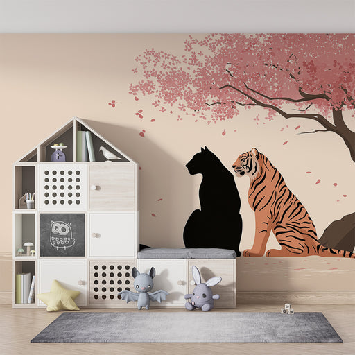 KidsWallForvandl dit barns værelse til en eventyrlig verden med denne børnetapet, der viser en panter og en tiger, der står over for hinanden under en maje...