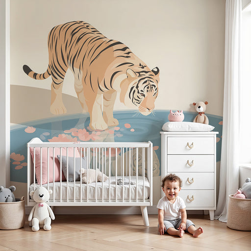 KidsWallForvandl dit barns værelse til en sand naturhelligdom med denne børnetapet, der viser en majestætisk tiger, der betragter sit spejlbillede i en dam...