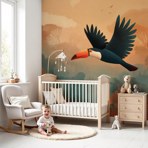 KidsWallForvandl dit barns værelse til en sand rejse gennem junglen med denne børneværelse tapet, der viser en majestætisk tukan i fuld flyvning. Mod baggr...