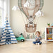 Tag med på et luftigt eventyr i din babys værelse med denne tapet til baby, der viser en sød luftballon. En drillende zebra, hyggeligt placeret i sin kurv, ser ud til at være klar til at udforske himlen. Den charmerende illustration tilfører en smule sødme og fantasi til dit barns rum.