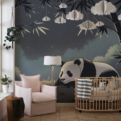 KidsWallBring en beroligende og fortryllende touch til dit barns værelse med denne børneværelse tapet, der viser en fredelig panda hvilende midt i en bambu...