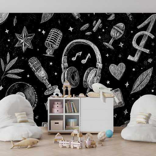 Vis alle detaljerMusik tapet | Kunstnerisk sort-hvid design