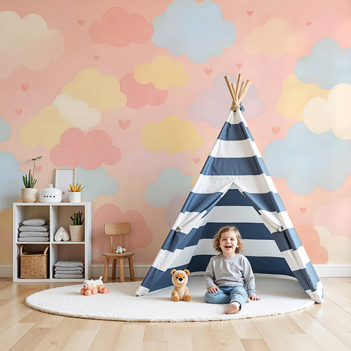 KidsWallOplev vores pastel sky tapet, ideel til at skabe en blød og drømmende atmosfære i et børneværelse eller legerum. Dets delikate, flerfarvede skyemøn...