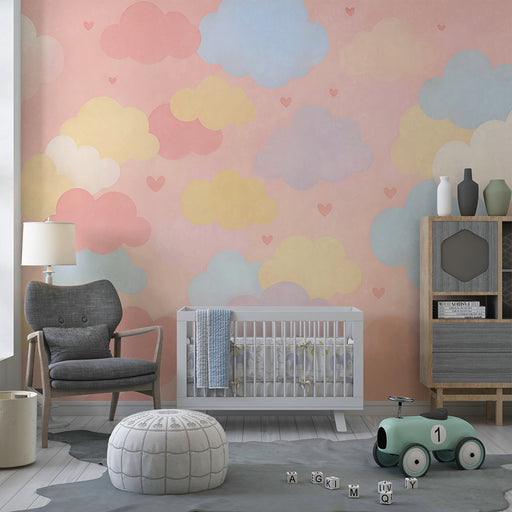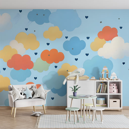 KidsWallBring en glad og legende stemning til dit barns værelse med vores sky tapet. Dette farverige design har flerfarvede skyer ledsaget af små hjerter, ...