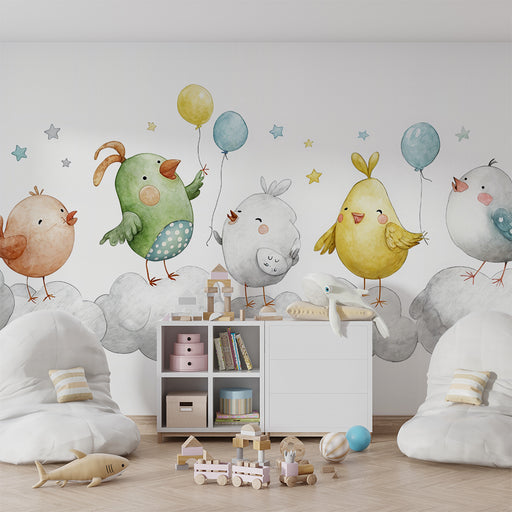KidsWallTilføj en magisk touch til dit barns værelse med vores børnetapet med fugle. Den glade illustration af farverige små fugle, der bærer balloner over...