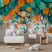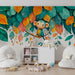 Tilføj et strejf af glæde og farve til dit barns værelse med vores abe tapet. Dette design viser en sød lille abe, der sidder på en gren, omgivet af levende orange og grønne blade. Perfekt til at skabe en varm og legende stemning, er dette farverige tapet ideelt til at stimulere de smås fantasi.