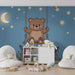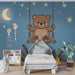 Børneværelse tapet | Sødt bjørn på en gynge under stjernerne