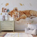Børneværelse tapet | Sovende løveunge blandt blade