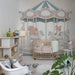 De blide, pastelfarver skaber en beroligende atmosfære, mens den delikate design af karrusellen inspirerer dit barns kreativitet. Hvert eneste detalje, fra karrusellens forfinede mønstre til dyrenes glade udtryk, er omhyggeligt illustreret for at skabe en varm og indbydende stemning.