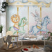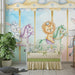 Forvandl dit barns værelse til et sted fyldt med magi og glæde med denne børneværelse tapet, der viser en fortryllende karrusel. Tre søde dyr - en smilende kanin, en glad løve og en majestætisk hest - springer yndefuldt på farverige ponyer under en pastelfarvet himmel.