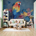 Børneværelse tapet | Farverig papegøje og efterårsblade