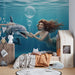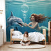 Dyk ned i en fortryllende verden med denne børnetapet, der viser en spillevende havfrue, der leger med en delfin, i dybet af en funklende ocean. Denne fængslende scene indbyder til eventyr og vækker fantasien hos små havforskere.