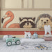 Tilføj lidt magi til dit barns værelse med denne børneværelse tapet, der viser søde dyr. En lyserød flamingo, en nysgerrig vaskebjørn og en drillende pindsvin kigger ud af et vindue og skaber en varm og sjov atmosfære. Dette pædagogiske og legende dekor vil stimulere din lille barns fantasi.