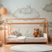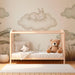 De store palmeløv og græsstrå tilføjer et strejf af natur, der forvandler værelset til en ægte rede. Hvert eneste detalje, fra de pastelfarvede nuancer til de runde former på skyerne, bidrager til en varm og trøstende stemning, perfekt til søvn og kærlige stunder.