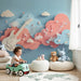Pynt dit rum med vores musik tapet, der viser en stiliseret guitar omgivet af lyserøde og blå skyer. Musiknoter og melodiske linjer tilføjer en kunstnerisk og drømmende dimension til din indretning.