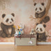 Børneværelse tapet pandas | Sødt og blomstrende design