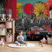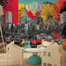 Bymønster tapet | Multifarvet kunstnerisk sammensætning