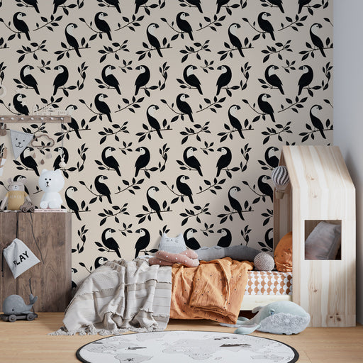 KidsWallBringen Sie mit dieser bezaubernden Tapete mit bunten Vögeln auf einem Ast einen Hauch von Liebe in das Zimmer Ihres Babys. Ein großer, weicher Her...