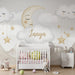 Babyzimmer Tapete | Lächelnde Wolken und goldener Mond über den Bergen