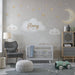 Babyzimmer Tapete | Sanfte Wolken und goldene Sterne in einem beruhigenden Himmel