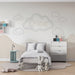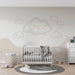 Babyzimmer Tapete | Sanfte Wolken und pastellfarbene Berge mit Namen