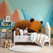 Babyzimmer Tapete | Schlafender Bär in einer bunten Berglandschaft