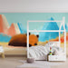 Verwandeln Sie das Zimmer Ihres Babys in einen sanften Rückzugsort mit dieser Babyzimmer Tapete, die einen friedlich schlafenden Bären inmitten einer lebendigen Berglandschaft zeigt. Die pastellfarbenen Berge, die von Blau bis Rosa reichen, schaffen eine beruhigende und träumerische Atmosphäre, ideal zum Schlafen und Entspannen.