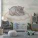 Babyzimmer Tapete | Träumendes Nilpferd auf einer Wolke