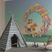 Verwandeln Sie das Zimmer Ihres Kindes in eine märchenhafte Welt mit dieser Kinderzimmer Tapete, die einen entzückenden Fuchs zeigt. Dieser freche kleine Begleiter spielt mitten in einem Kreis aus bunten Pilzen und schafft eine fröhliche und verspielte Atmosphäre.