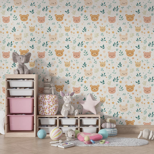 Kinderzimmer Tapete mit Mustern | Niedliche Bären und sanfte Blumenmuster