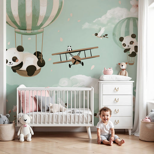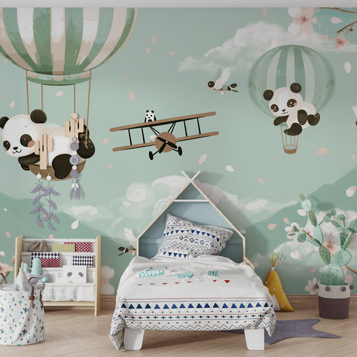 KidsWallStellen Sie sich einen Himmel voller leichter Heißluftballons vor, in dem niedliche verspielte Pandas über die Berge schweben, getragen vom Wind un...