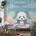 Babyzimmer Tapete | Niedlicher Panda inmitten bunter Blätter
