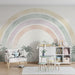 Babyzimmer Tapete | Pastellregenbogen und Palmen in einer sanften Atmosphäre