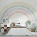 Neugestalten Sie das Zimmer Ihres Babys zu einem entzückenden Ort mit dieser zarten Babyzimmer Tapete, die einen pastellfarbenen Regenbogen vor üppigen Palmen zeigt. Die sanften Farbtöne von Rosa, Grün und Gelb schaffen eine beruhigende Atmosphäre, ideal für die süßesten Träume.