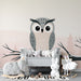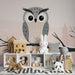 Der Hintergrund mit Baum- und Hügelsilhouetten verleiht einen Hauch von Natur, während die Eule mit ihren großen ausdrucksstarken Augen über den Schlaf Ihres Kleinen wacht. Dieses bezaubernde Design regt die Fantasie an und verleiht dem Raum eine ruhige Atmosphäre.