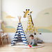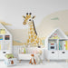 Die Giraffe mit ihren zarten Flecken und ihrem friedlichen Ausdruck wird zum Mittelpunkt des Raumes und weckt die Neugier der Kleinen. Die sanften Hügel und stilisierten Wolken verleihen dem Raum eine traumhafte und imaginative Note und machen diesen Raum zu einem echten Kokon der Ruhe.
