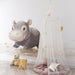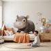 Bringen Sie mit dieser Babyzimmer Tapete mit einem entzückenden Nilpferd, das in einem Teich spielt, eine sanfte und fröhliche Note in das Zimmer Ihres Babys. Mit seinem verschmitzten Lächeln und seinen großen strahlenden Augen schafft dieses Nilpferd eine verspielte und warme Atmosphäre.