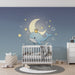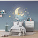 Babyzimmer Tapete | Königlicher Wal unter dem Mond mit Sternen und Blasen