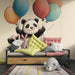 Babyzimmer Tapete | Fröhlicher Panda mit bunten Luftballons
