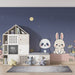 Gestalten Sie das Zimmer Ihres Babys mit dieser bezaubernden Babyzimmer Tapete neu. Ein entzückender Panda und ein niedliches Kaninchen stehen nebeneinander, umgeben von zarten Blumen, die einen Hauch von Farbe und Sanftheit verleihen. Der sternenklare Himmel und der leuchtende Mond schaffen eine magische Atmosphäre, die perfekt ist, um die Nächte Ihres Kleinen zu beruhigen.
