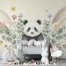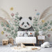 Babyzimmer Tapete | Niedlicher Panda umgeben von zarten Blumen