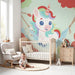 Kinderzimmer Tapete | Regenbogen-Einhorn und bunte Wolken