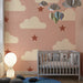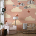 Verwandeln Sie das Zimmer Ihres Babys in einen Kokon der Sanftheit mit dieser Babyzimmer Tapete mit flauschigen Wolken und glitzernden Sternen. Der beruhigende rosa Hintergrund schafft eine warme und einladende Atmosphäre, perfekt für nächtliche Abenteuerträume.